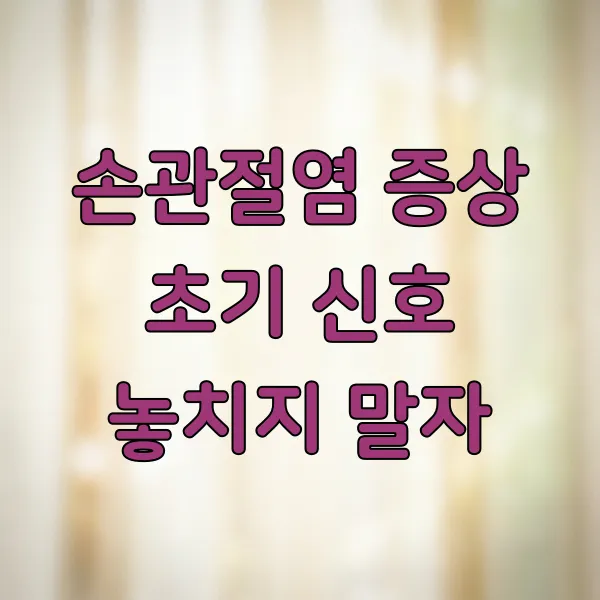 이 글을 통해 손관절염의 초기 증상들을 자세히 알아보고, 어떻게 대처하면 좋을지 함께 이야기 나눠봐요. 건강한 손으로 편안한 일상을 이어가는 데 도움이 되기를 바라요!