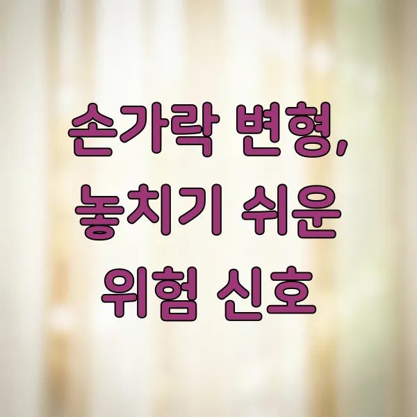 이러한 변형은 미용적인 문제뿐만 아니라, 손의 기능 자체를 심각하게 저하시킬 수 있어요. 작은 물건을 잡거나 섬세한 작업을 하는 것이 점점 더 어려워지게 된답니다. 초기에는 잘 인지하지 못했을 수도 있지만, 시간이 지날수록 이러한 변화가 눈에 띄게 나타날 수 있어요.