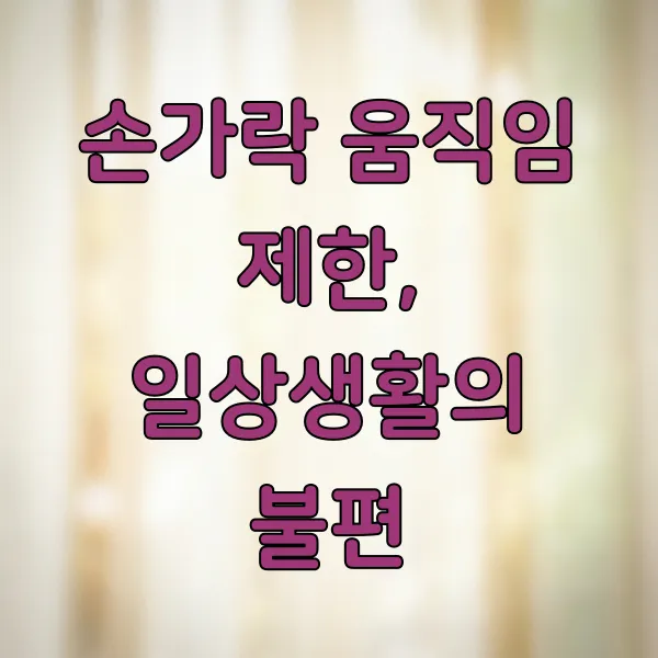 이러한 움직임 제한은 관절의 연골이 닳거나 염증이 심해지면서 관절의 정상적인 움직임 범위를 벗어나기 때문에 발생해요. 만약 손을 굽히거나 펼 때 '뚝뚝' 소리가 나거나 걸리는 느낌이 든다면, 이는 관절 연골의 손상 을 의심해 볼 수 있는 증상이에요.