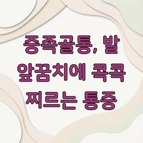 중족골통은 발바닥 앞쪽, 즉 발가락으로 이어지는 뼈들(중족골) 부위에 발생하는 통증을 말해요. 주로 발 볼이 좁거나 하이힐을 자주 신는 분들에게서 많이 나타나지만, 활동량이 많은 운동선수들에게서도 흔히 볼 수 있답니다.
