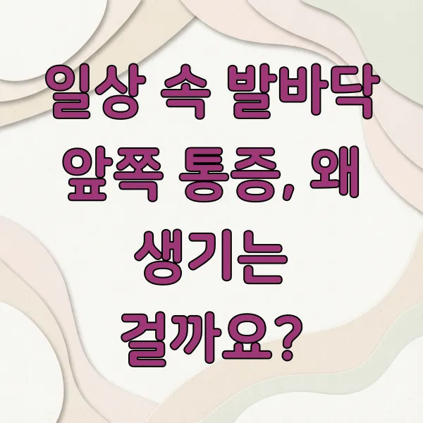 발바닥 앞쪽, 즉 발 앞꿈치 쪽에 느껴지는 불편함은 생각보다 많은 분들이 겪고 계신 증상이에요. 걷거나 서 있을 때 찌릿하거나 묵직한 통증이 있다면, 오늘 이 글이 여러분의 궁금증을 해소해 드릴 거예요. 어떤 원인 때문에 통증이 생기는지, 그리고 집에서 간단히 해볼 수 있는 체크포인트들을 함께 살펴볼게요.
