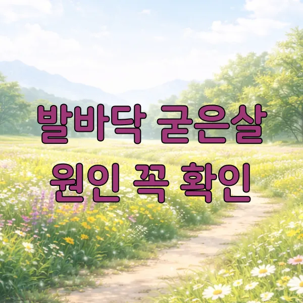 발바닥 굳은살은 단순한 피부 두꺼워짐이 아니라, 우리 몸의 신호를 나타내는 증상일 수 있어요. 올바른 원인을 파악하고 맞춤 관리법을 실천하는 것이 중요하답니다. 이 글을 통해 발바닥 굳은살의 다양한 원인과 효과적인 대처 방안을 알아보시고, 건강한 발걸음을 되찾으시길 바랍니다.